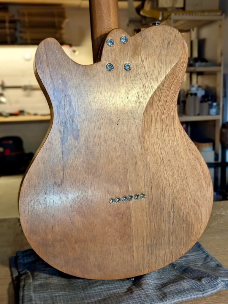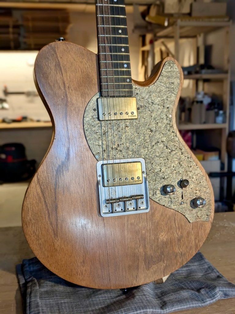 Guitare entièrement conçue et fabriquée à la main dans mon atelier à Egletons (Corrèze, France).